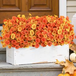 - 🍂【UV Resistant and No Fade】The artificial flowers for outdoors are made of high-quality poisonless and harmless PC plastic and silk fabric. , which is UV and all weather resistant, waterproof, ensuring long-lasting beauty and no fade in the sunshine.