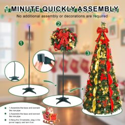- 【Pre-Decorated Christmas Tree】Enjoy instant holiday charm with this beautifully adorned tree, featuring a delightful array of Christmas balls, bows, flowers, and webbing, all pre-attached for your convenience. Integrated LED lights add a warm and festive glow. Simply unpack and display—everything is already in place