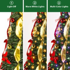 5ft Pop Up Warm White & Multi-Color Lights Artificial Christmas Tree with Red&Gold Decorations