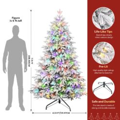 - 【High-quality Materials】Made of environment-friendly PE material, this pre-Lit snow flocked Christmas tree are odorless and harmless to human body for safe use. With exquisite craftsmanship, it is non-flammable and not easy to fade and deform, providing you with long-term service.