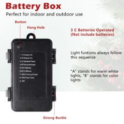 - 🎄【Battery Case】Besides the remote control, you also can switch the lighting modes by pressing the round button on the battery box, “A” stands for warm white lights, “B” stands for colored lights.It operated by 3AA batteries (Note: batteries are not included.)