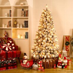 - 【FLOCKED DESIGN】 With 998 branch tips, the 9 ft artificial hinged flocked tree is leafy and fluffy, creating a full and realistic appearance. Snow flocked leaves on the tree make you feel like you are in the world of snow. You can embrace the joy of Christmas to your heart’s content, adding more shiny factors to your living space.